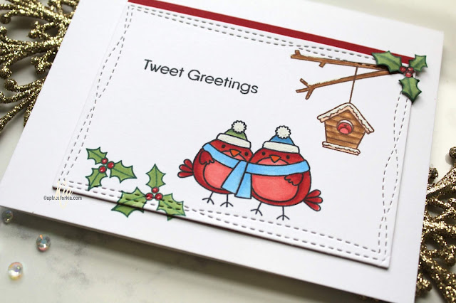 I am using My Favorite Things Tweet Greetings Stamp Set today. I could not resist these little darlings, well actually I can not resist any bird stamps!