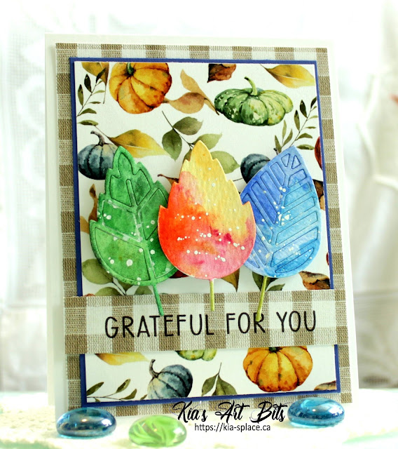 For my background I am using Gina K Design designer paper called Autumn Splendor. The leaves are by Pinkfresh called Pinkfresh Studio Foliage Shaker dies.